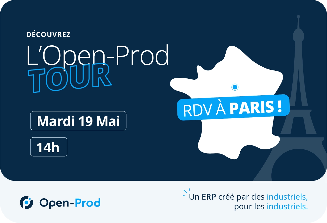 Le monde industriel évolue, et votre ERP aussi. Nous avons le plaisir de vous annoncer la prochaine étape de l’Open-Prod Tour 2026, qui fera escale à Paris le mardi 19 mai.